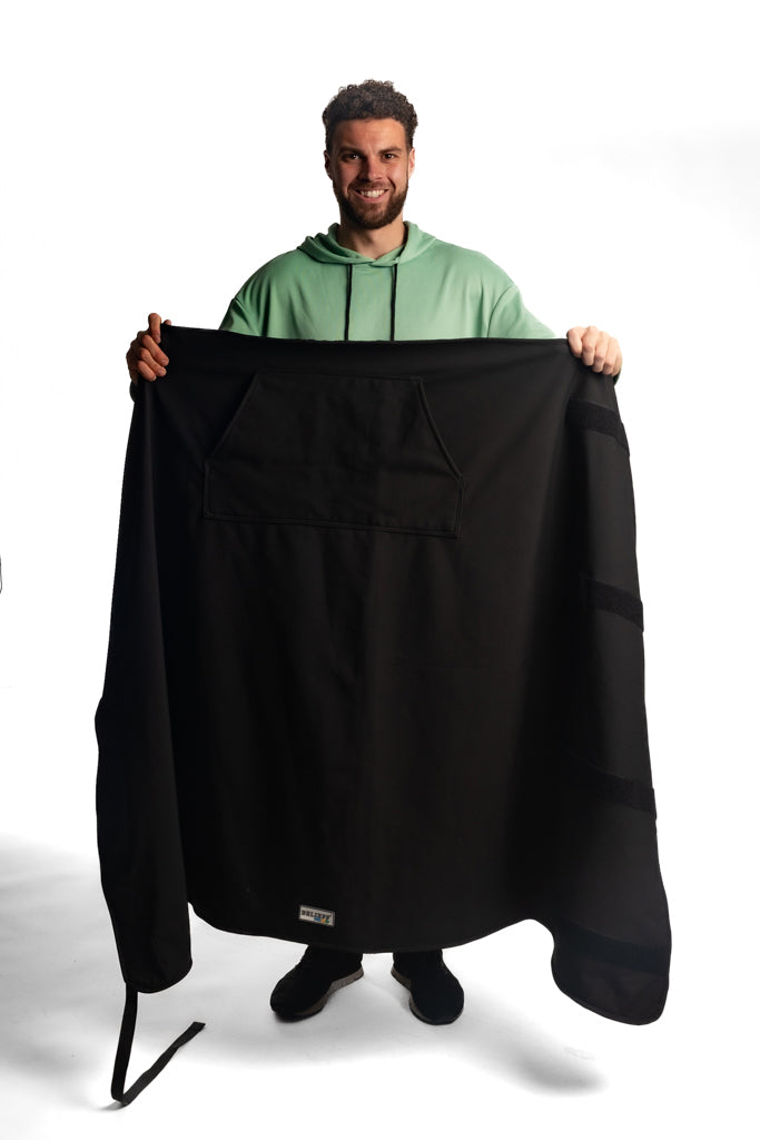 De open deken is makkelijk over je heen te leggen en aan de achterkant open om snel te gebruiken.