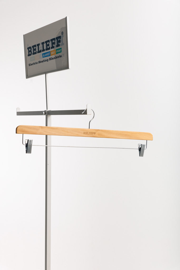 Berg je Belieff deken op in stijl met de Belieff Dekenhanger. Deze hanger is speciaal ontworpen om jouw deken netjes en veilig op te hangen wanneer deze niet in gebruik is.