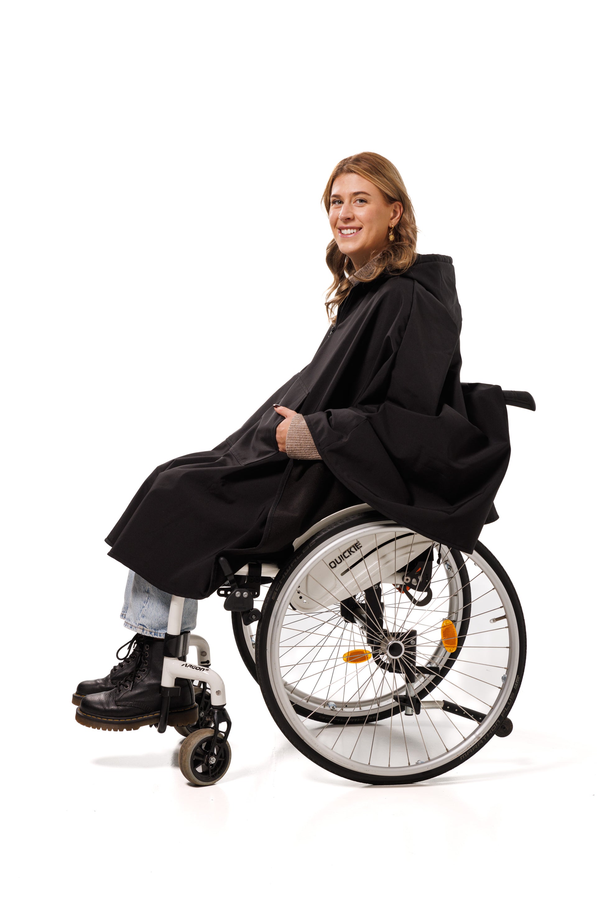 Deze rolstoelponcho met mouwen is ideaal voor iedereen die droog en comfortabel wil blijven, ongeacht de omstandigheden.